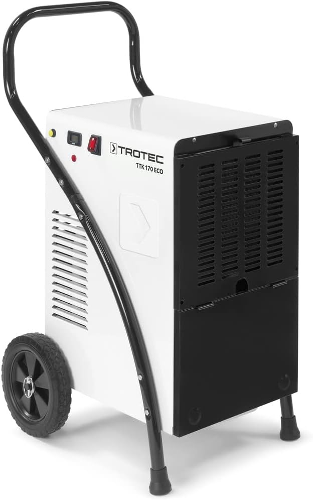 Der Bautrockner / Luftentfeuchter TTK 170 ECO hat eine Max. Entfeuchtungsleistung von 52L / 24h und ist für Räume mit einer Größe von max. 90 qm geeignet.
